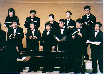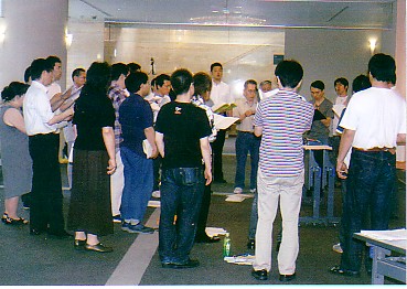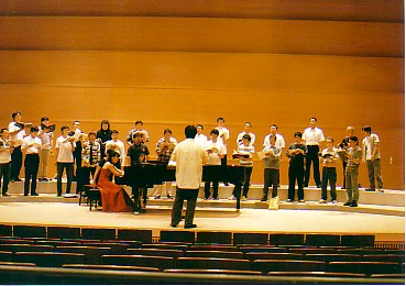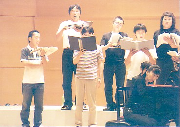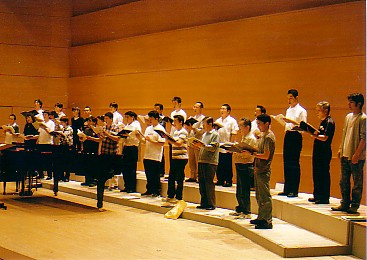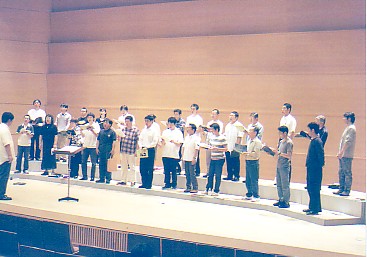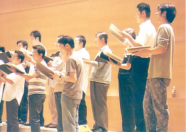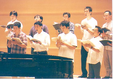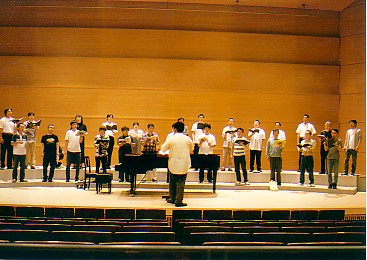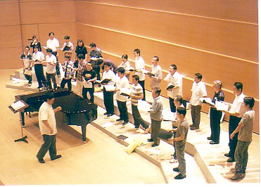 各パートの音色を合わせる練習ですね。写真左はテナー系、写真右はBaritonの面々です。