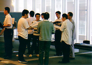 休憩中も楽譜を見入る団員の面々・・・。真剣です。