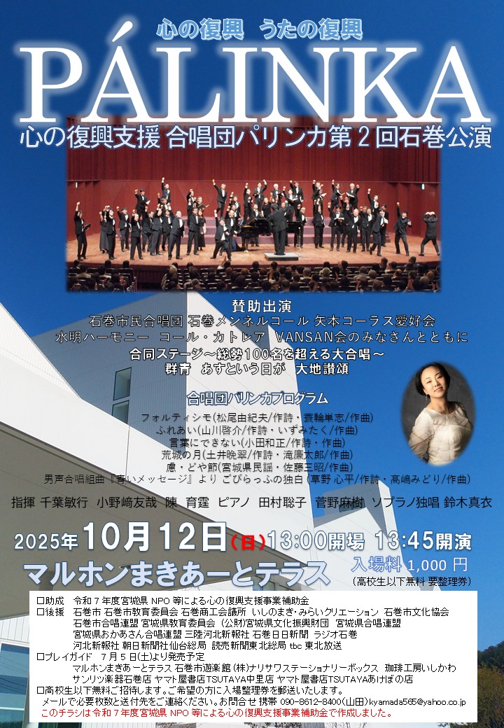 合唱団パリンカ第2回石巻公演演奏会は無事終了しました。