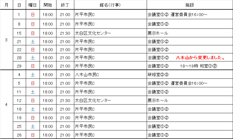今後の練習日程
